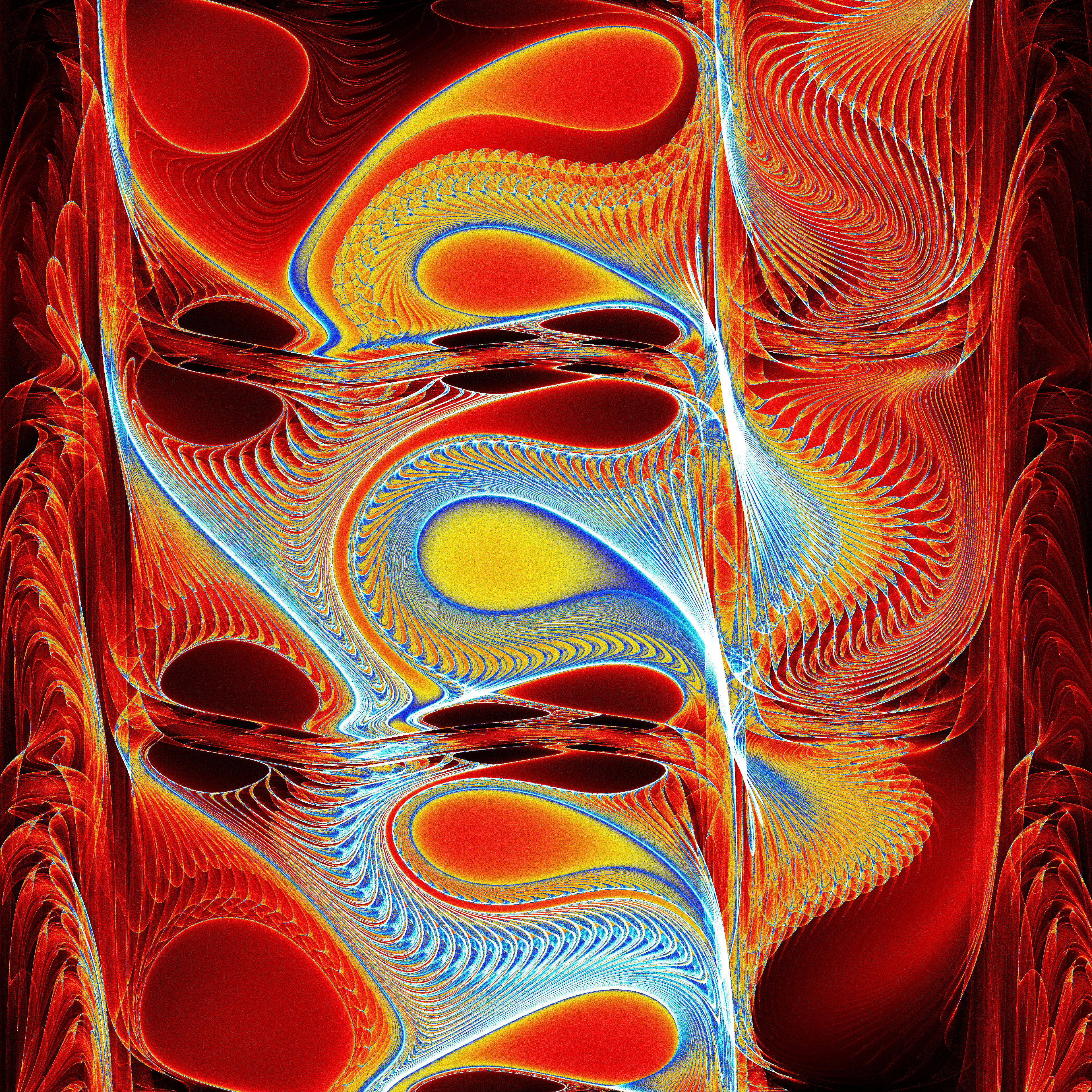 Over time people have started calling any orbit fractal of similar form a Pickover Popcorn Fractal. Common modifications include replacing one or more of the trig functions with other trig functions.