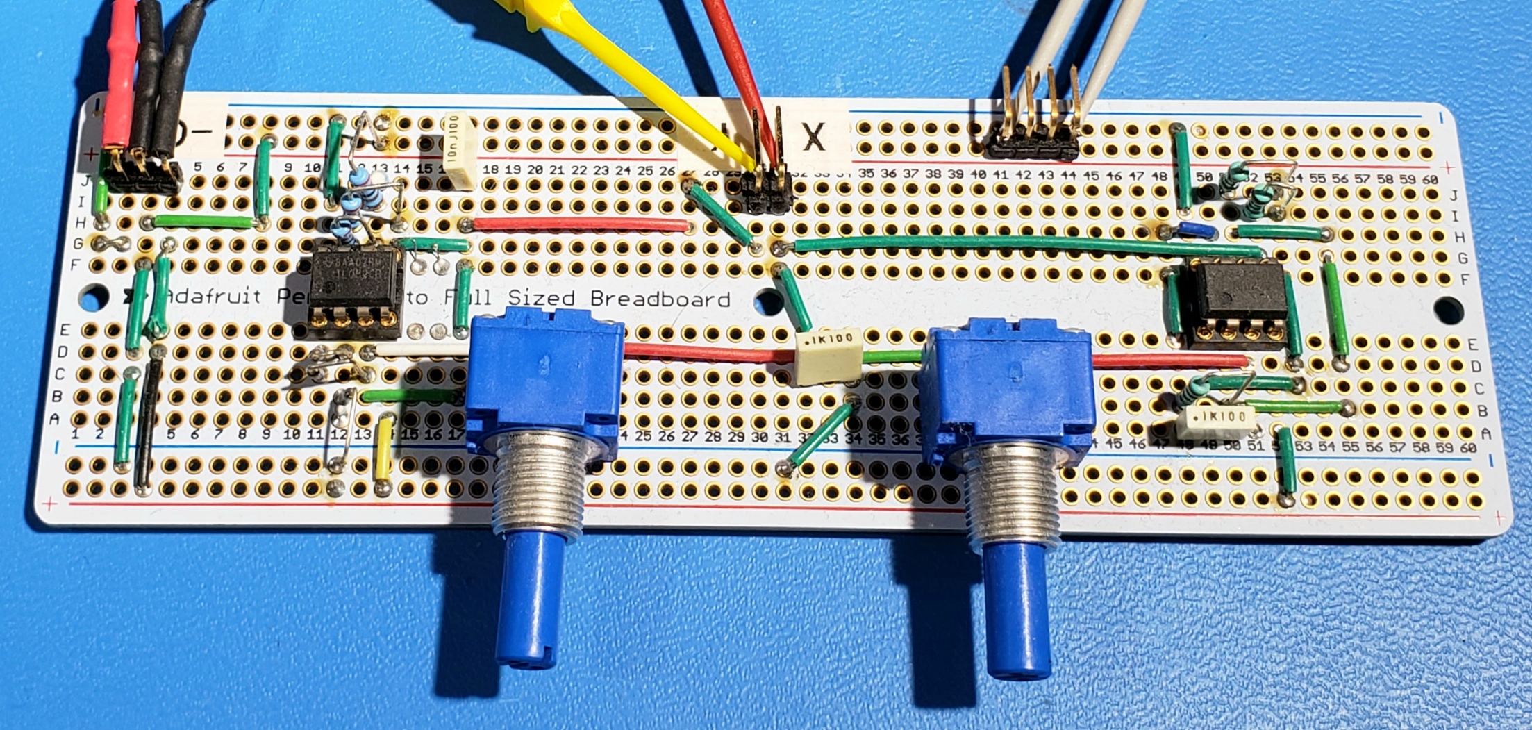 Also notice that I used potentiometers for R7 & R12 so I could play with the circuit a bit. As a secondary advantage, the potentiometers also allowed me