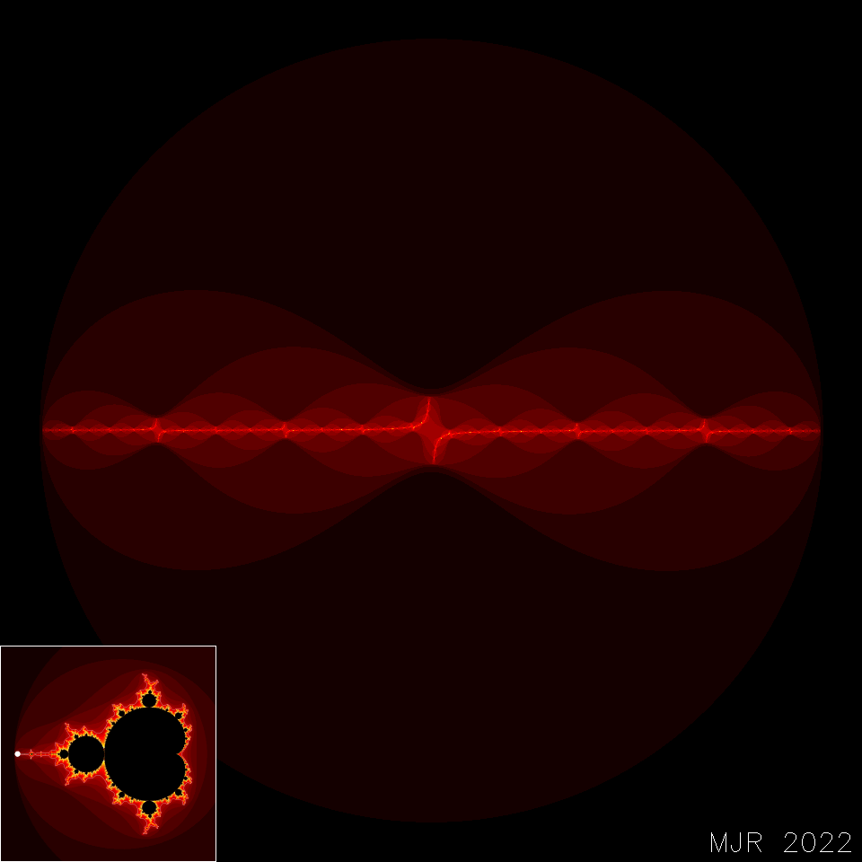 Julia sets are generated in much the same way as the Mandelbrot Set. In both cases sample a rectangular part of the complex plane at a discreet grid of points, iterate a function at each point, and the color the point according to some aspect of the sequence behavior. For the Mandelbrot Set we set \(c\) in the following formula to the grid point, set \(z=0\), and iterate the function.