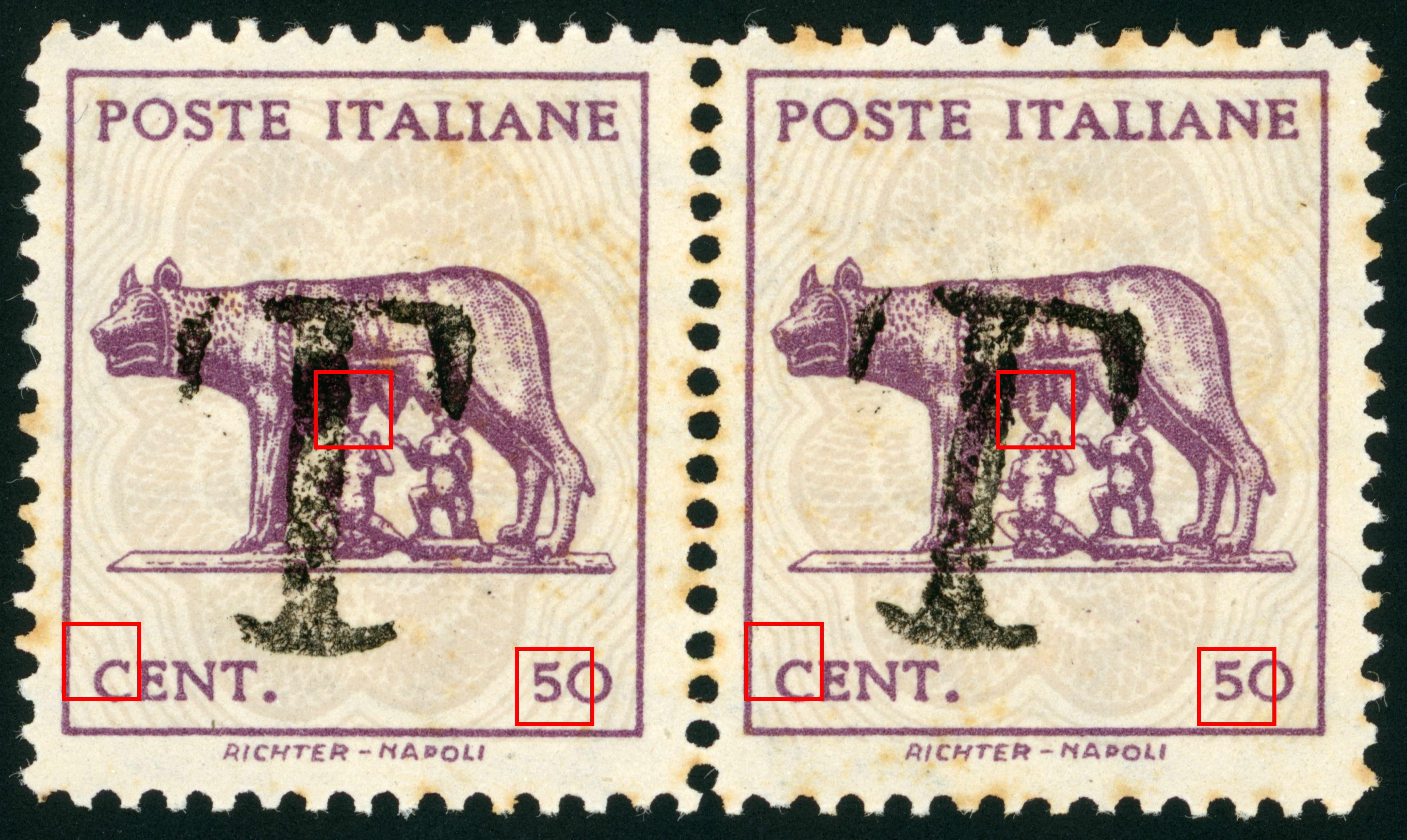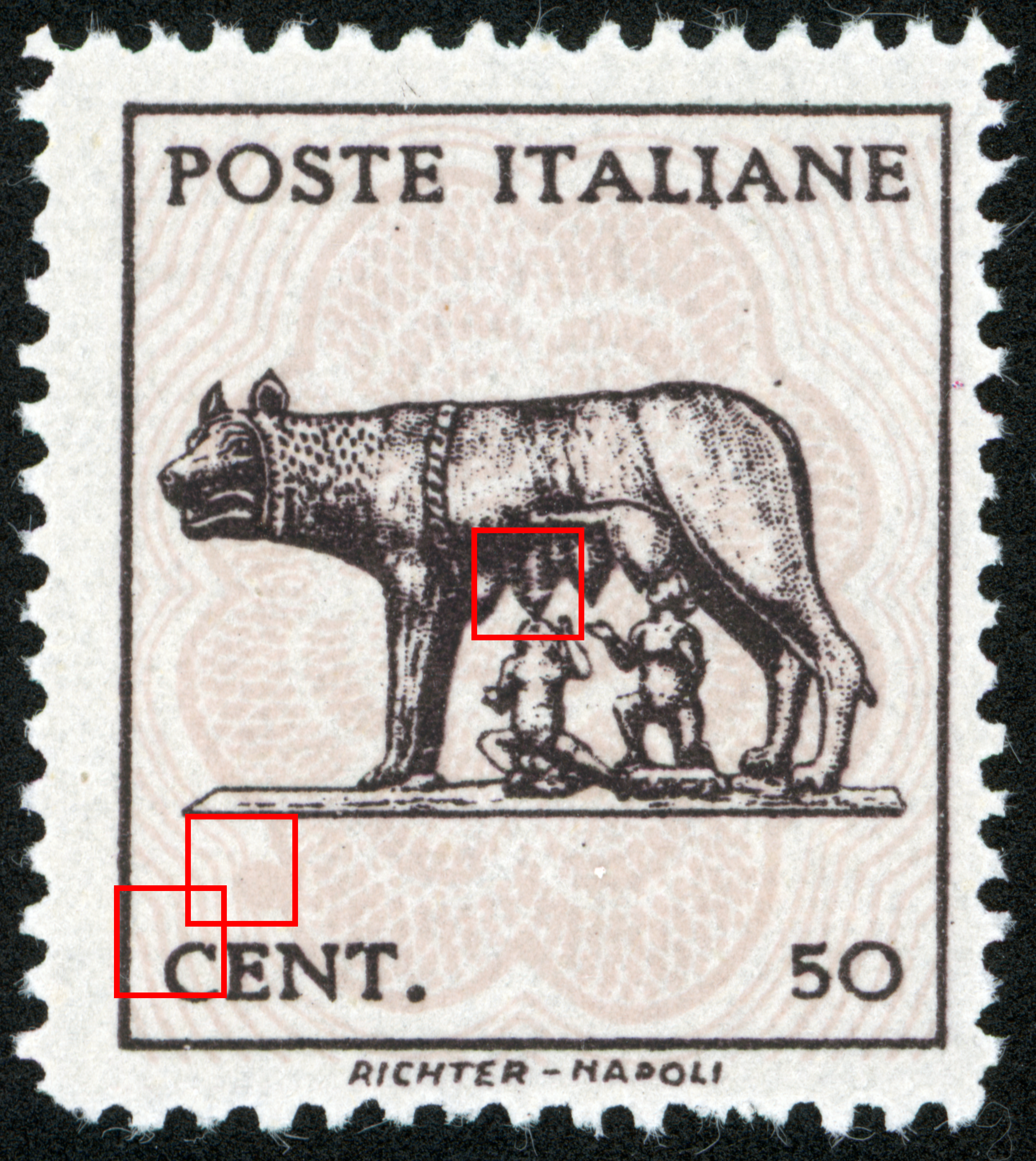 - Interesting: Front has parts of 3 wolf impressions, and the back has parts of 2. The back also has parts of two burelage impressions. That means this scrap has bits from 7 different stamps!