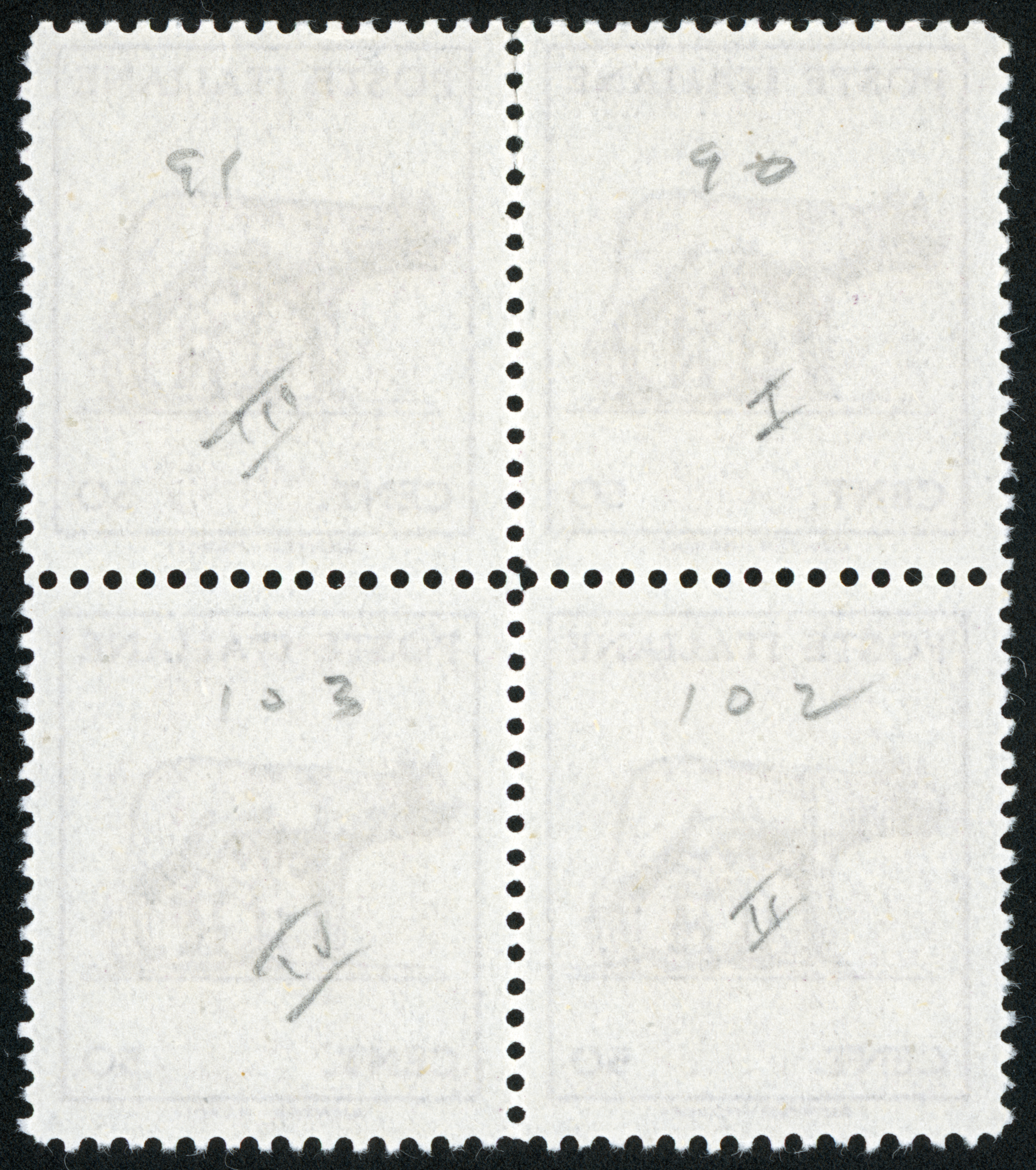 Cp12r1c1 - Block of four with all four Burelage types.